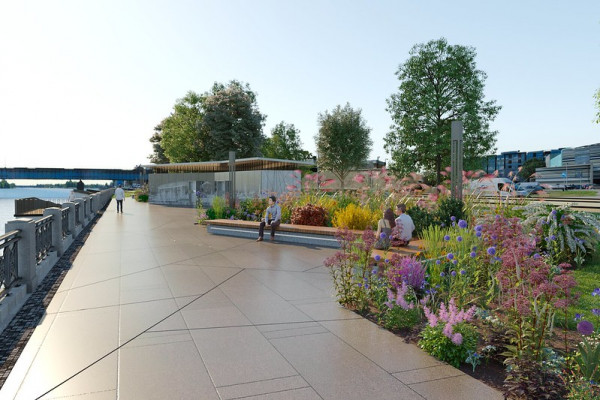 В ходе стройки будет укреплена речная набережная, заново проложены пешеходные и велосипедные дорожки, а также построен пешеходный мост для перехода на Каменный мост. Таким образом увеличится длина променада, а велосипедная дорожка будет включена в маршрут Центр—Зиепниеккалнс.